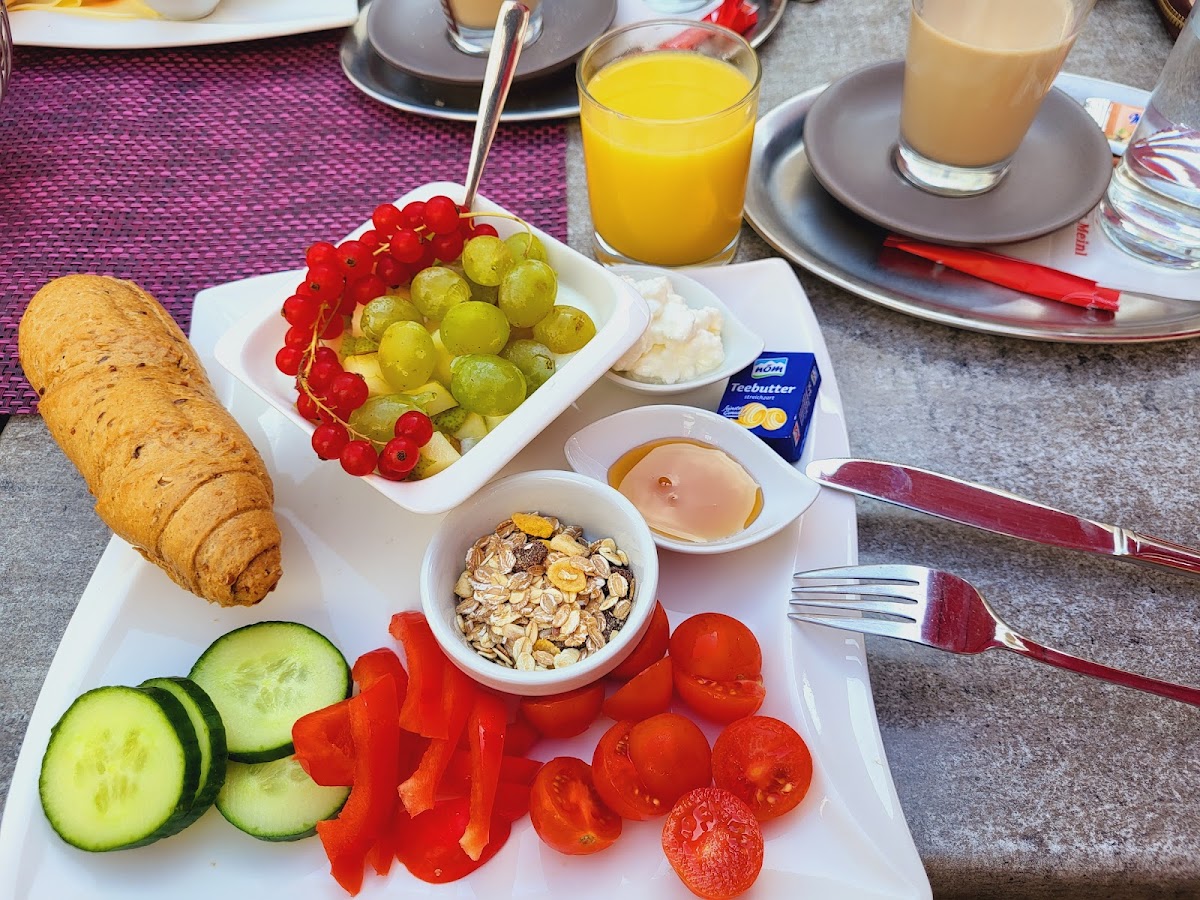 Also an sich sehr lecker 2 Sachen haben mich gestört und deswegen der Punkteabzug und zwar stand in der Speisekarte Orangensaft und Frischkäse. Leider war nirgends zu lesen dass der Orangensaft mit Fruchtfleisch ist und der Frischkäse ein Körniger Frischkäse ist. Dass sollte man ergänzen. Ansonsten hat alles gepasst
